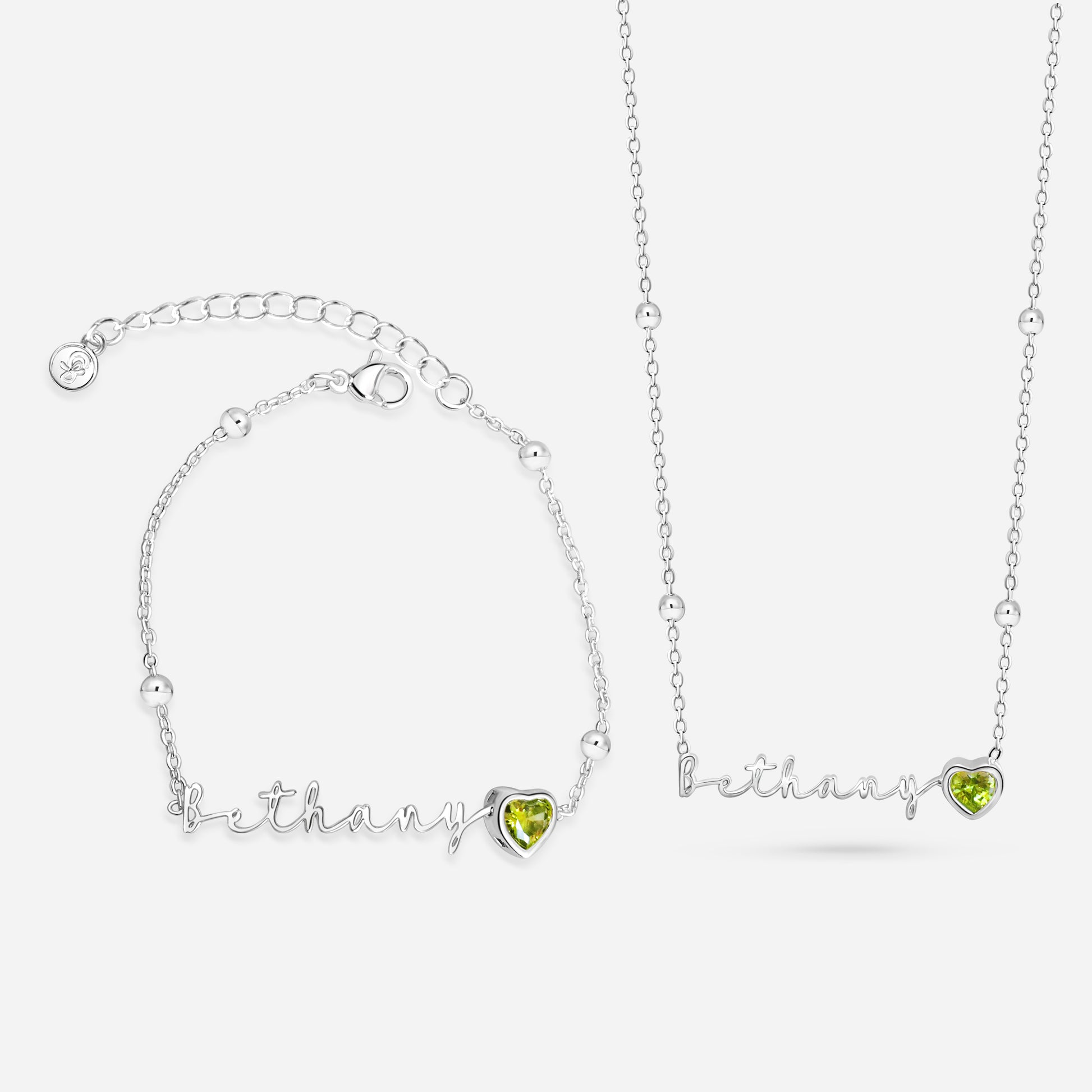 Celebrate your unique story with our personalized necklace & bracelet, featuring a stunning birthstone that adds a touch of individuality.