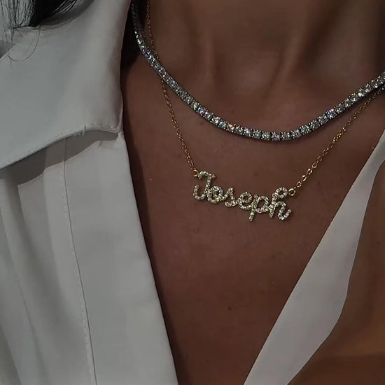 Elegate every outfit with this stunning Cursavise font necklace, adorned with dazzling CZ stones. The perfect blend of elegance and sparkle for any occasion